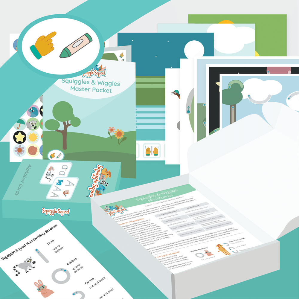 This pack includes all of the teaching tools, student resources, and classroom visuals needed to help young learners develop the motor skills used in letter formation. With resources like friendly posters to guide large movement, table mats and alphabet trace cards to reinforce directionality, and a collection of reproducible master sheets that introduce preschoolers to letter and number formation, students will gain the writing skills and confidence they need to start kindergarten. Teachers also get access to the Squiggle Squad Teachers’ Lounge where they will find a growing bank of product-use ideas, downloadable resources, and tutorials.