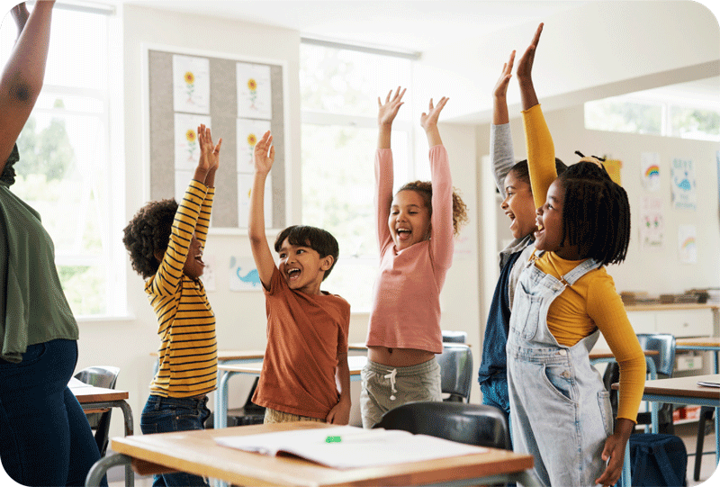 With the help of wall posters, students trace fun pathways in the air to improve body control, prepping them for fine motor activities.